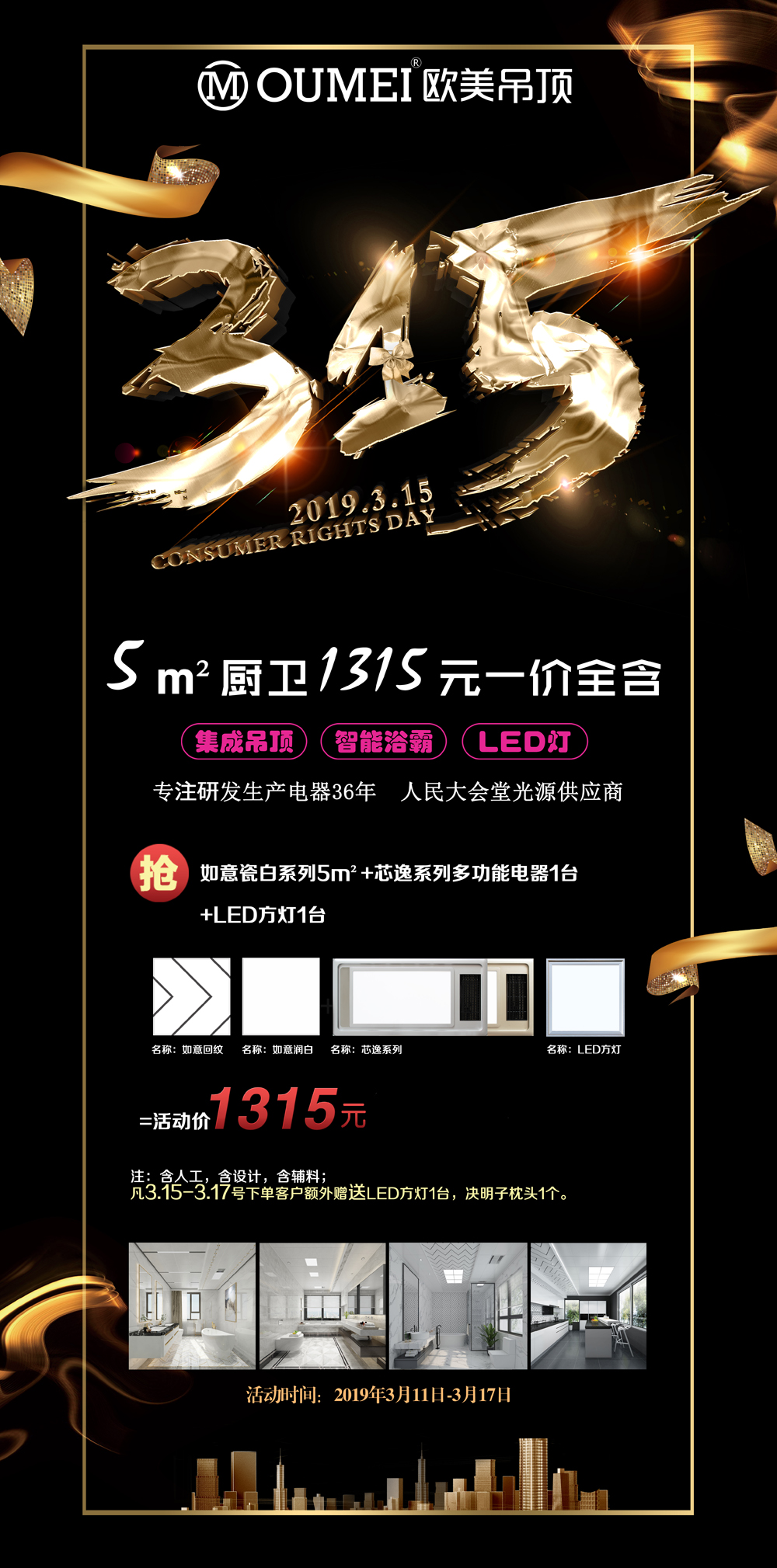 欧美吊顶315品质生活季,2019.3.11-3.17,厂家直惠,品质为上,为你家的高品质家装保驾护航!