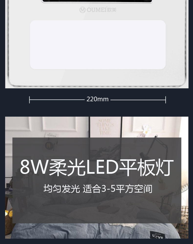 220MM,8W柔光LED平板灯,均匀发光,适合3-5㎡空间,升级款凉宝2号新增了照明功能,既节约了吊顶空间,又满足了空间照明所需!